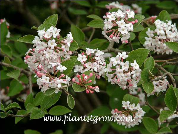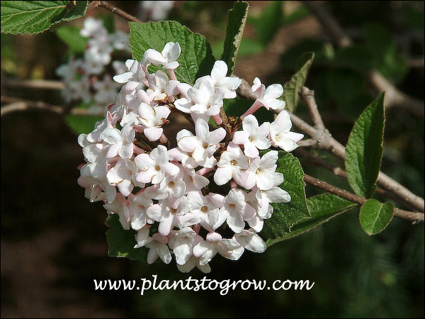 A very showy, early spring blooming, fragrant shrub. This is an improved hybrid of Viburnum carlesii (Koreanspice Viburnum)