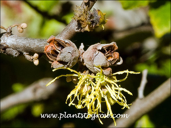 | Flowers | yellow blossoms have very narrow petals looking like yellow spiders, petals roll up in cold weather to protect the flower |