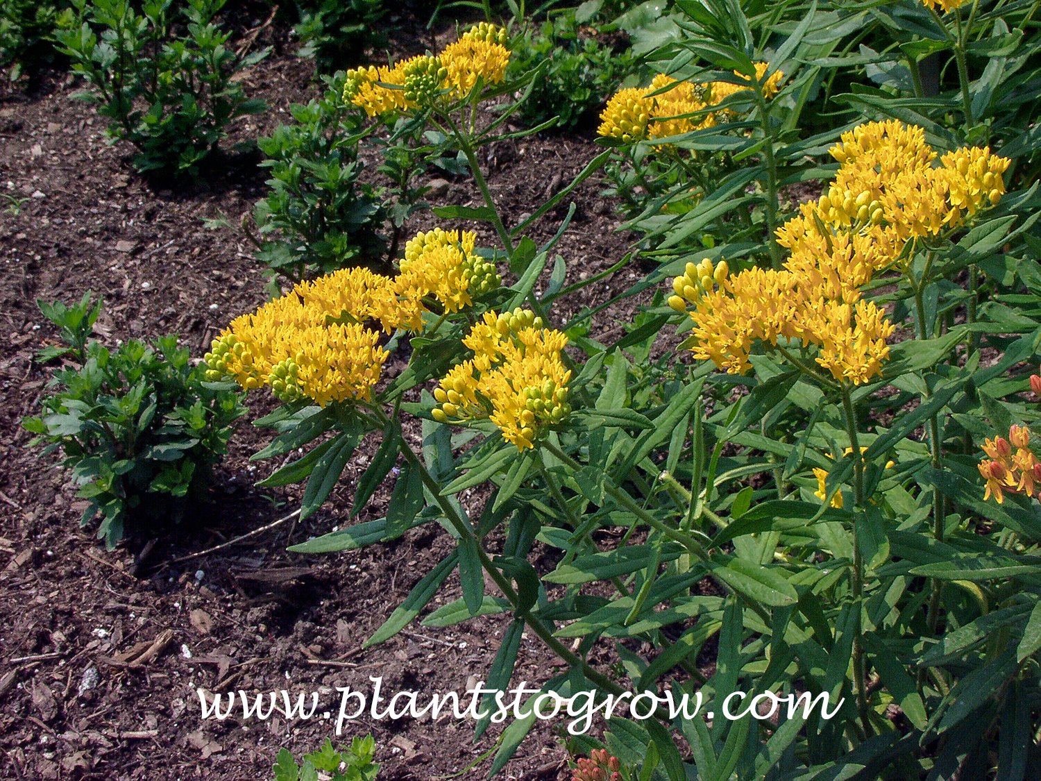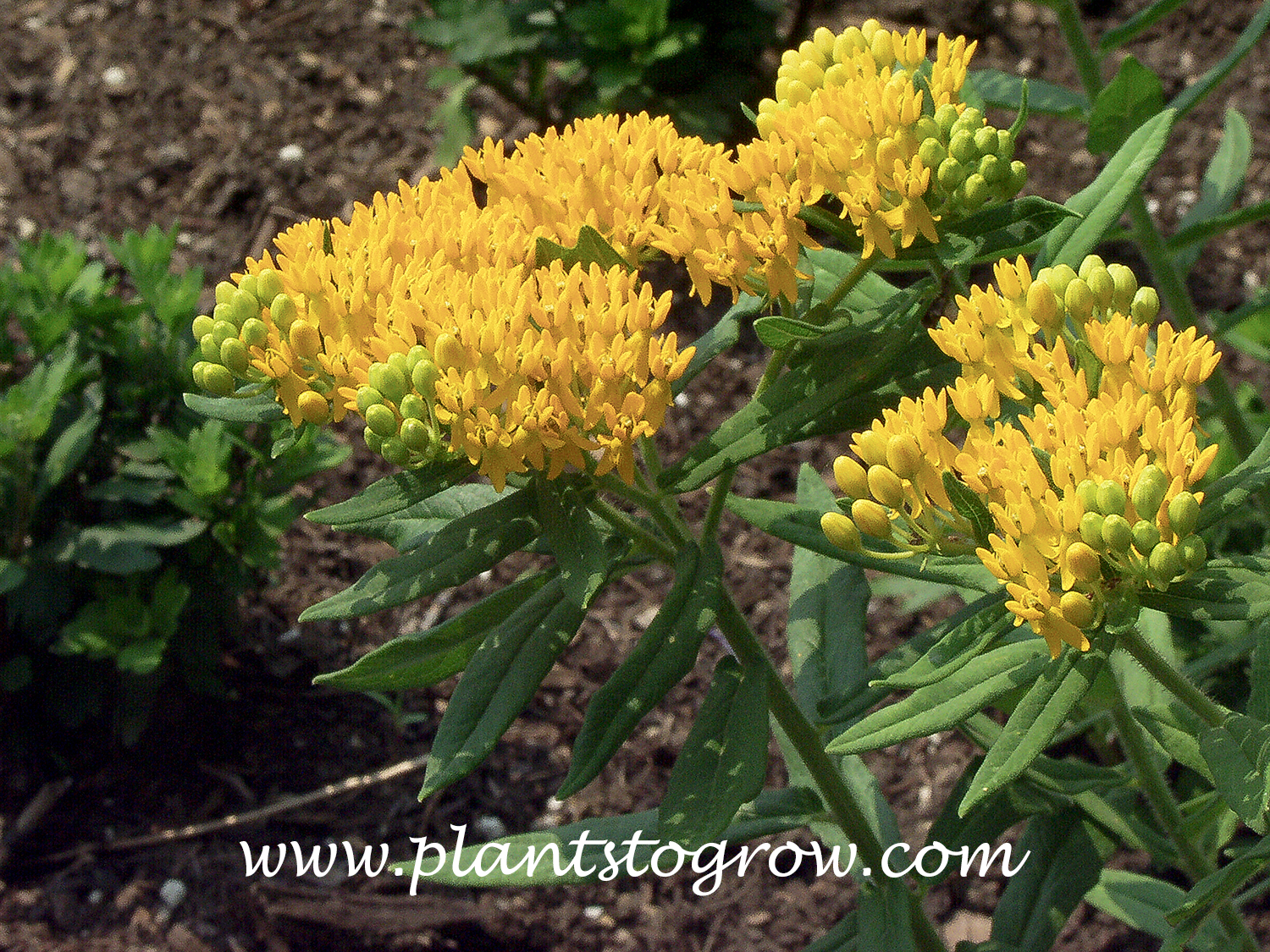 | Flowers | Flowers are bright yellow. The inflorescence is a many-flowered umbel on stalks. The flower clusters can contain 25 or more individual 3/4-inch flowers. Flowers are a nectar source for hummingbirds, butterflies, and many other pollinators, and leaves are a food source for monarch butterfly larvae (caterpillars). |