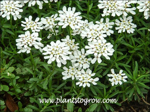 The species plant Iberis sempervirens is native to southern Europe and the Mediterranean region. Found growing in open woodlands and on rocky hillsides, often in crevices on exposed rock outcrops.