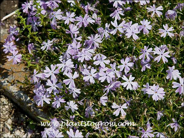 If Creeping Phlox is planted close to a sidewalk, patio, etc. it will creep into this area. Most people will shear it straight on the edges leaving a rough brown edge. A way to avoid this ugly look is to lift the edges of the plant up and cut the brown underside of the plant leaving a layer of growing foliage on the top to fill in. Than take this foliage and feather it back with a pruning shear or scissors. This works with Creeping Phlox because it tends to grow in layers with the new growth creeping over the older growth. When grass or weed start growing through the foliage, lift the plant and pull the weeds from underneath. Once established the weed problem will be minimal. A light shearing after bloom will incourage compact growth