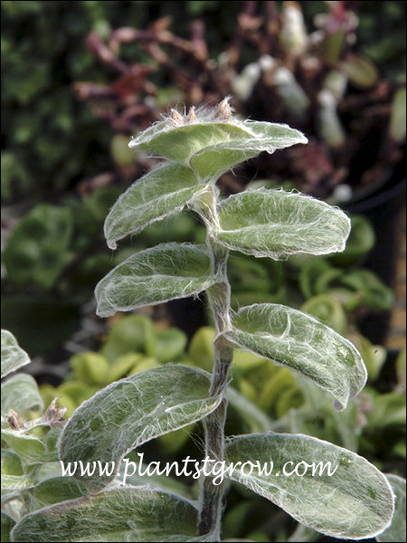 At first the plant will grow upright but the stems will become heavy and cascade over the side of the pot. Leaves are covered with a woolly hair, especially the new leaves at the terminal tip of the branch. The brighter the light the thicker the wool.