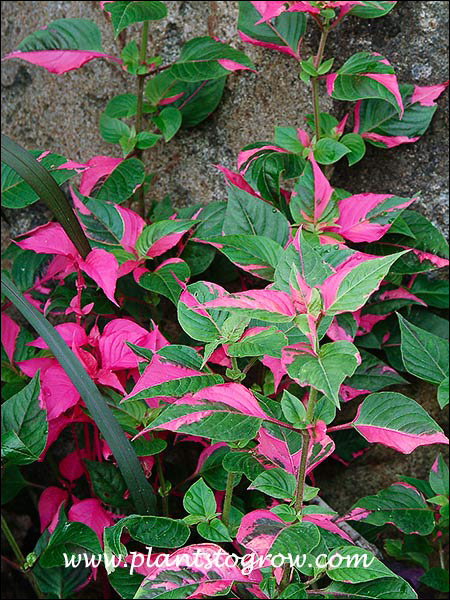 | Description | A Josephs Coat cultivar with pink and green leaves. |