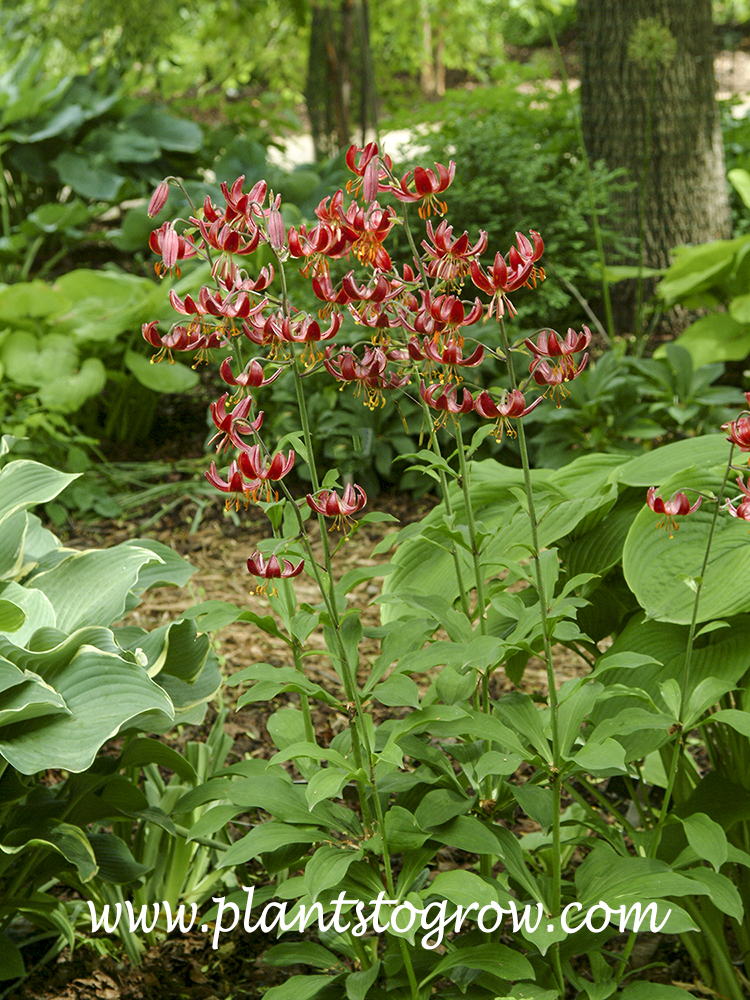 | Description | 'Claude Shride 'Martagon Lily has a pendulous cluster of maroon to red flowers with recurved petals. |