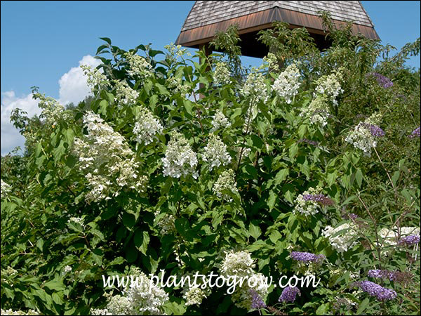 The blooms are formed on the new wood. Pruning in the fall or early spring will produce lots of new wood. At this time you can control the height, spread and shape of the plant, by the amount that is pruned. I like to use a pruning shears not hedge shears. With pruning shears I can better control the shape and the cuts are more precise. Thinning can help reduce some of the weight off the branches