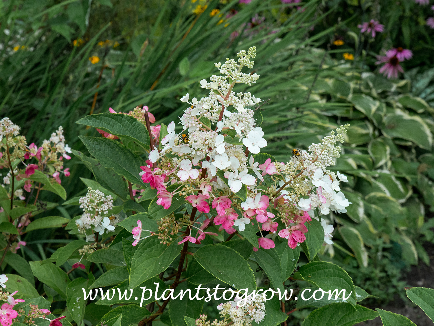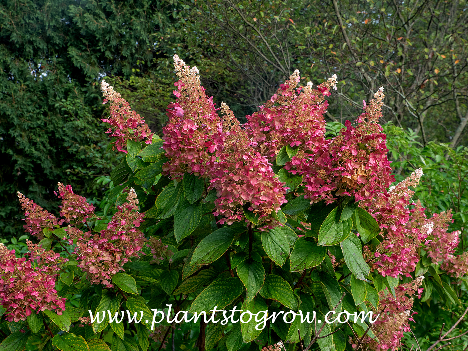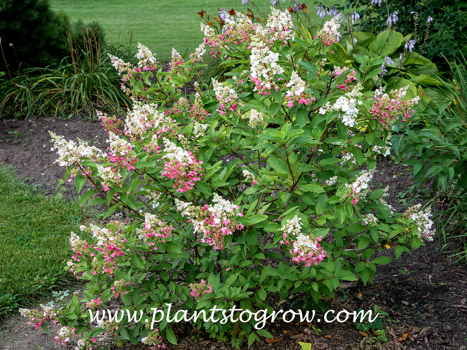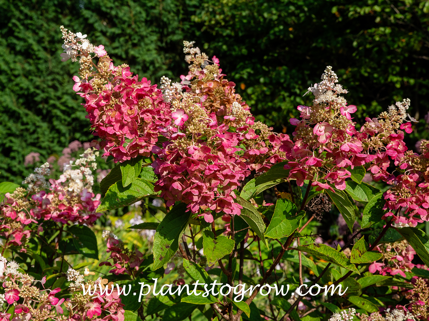 | Description | Hydrangea Pinky Winky (Hydrangea paniculata) produces a two-tone flower in the fall. The base florets turn pink to red, while the top may remain white. |
