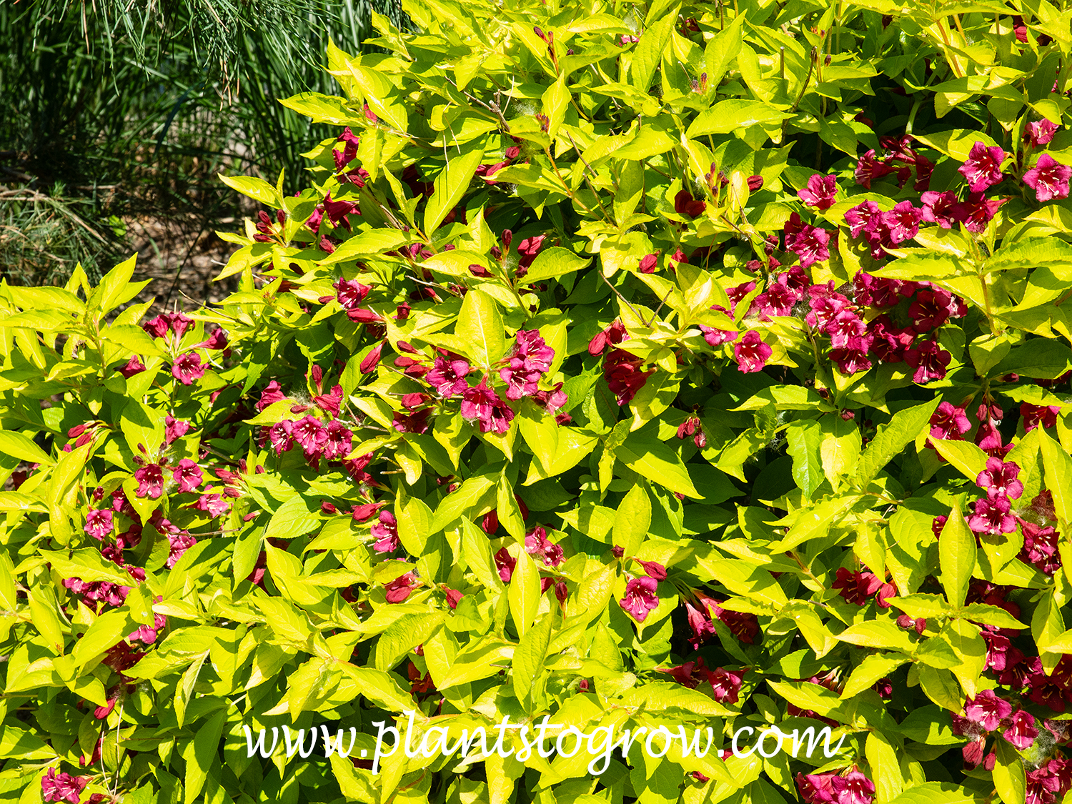 | Description | Weigela Briant Rubidor (Weigela Briant Rubidor) is a small to medium shrub with bright yellow to chartreuse foliage. Has contrasting red, trumpet-shaped flowers. |
