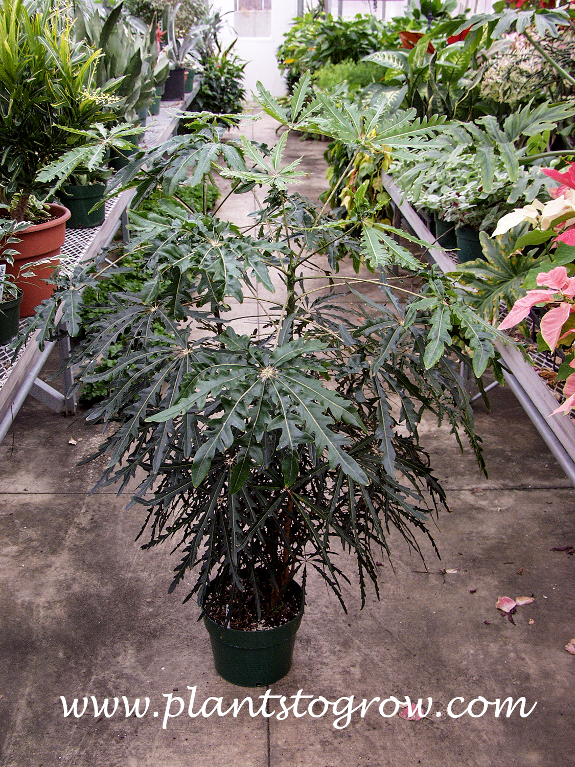 | Description | False Aralia (Plerandra elegantissima) is a small tropical shrub or small tree that can be kept as an indoor plant. Thrives in bright light, warm, high-humidity conditions.
