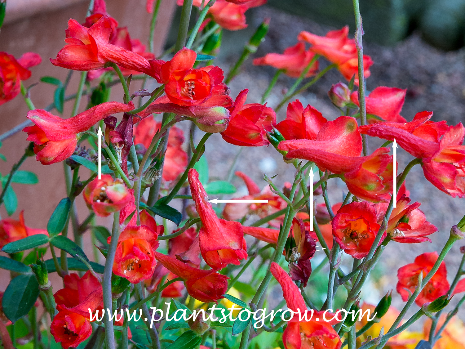 | Flowers | Tubular, reddish orange, borne on a thin stalk. Pollinated by hummingbirds, have nectar spurs on the backside of the flower, |