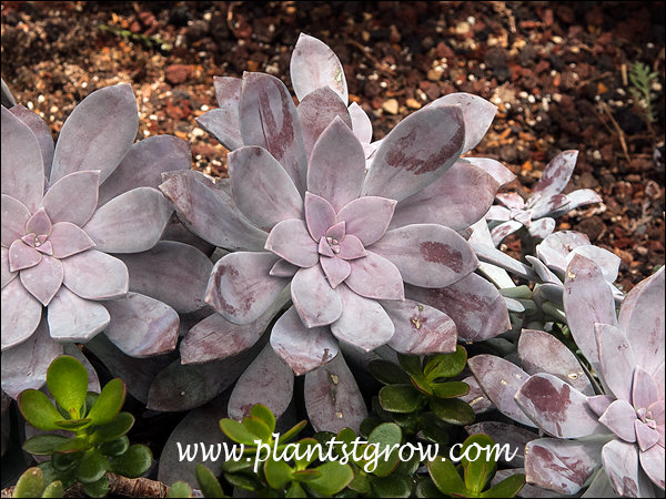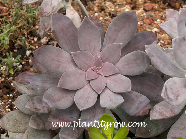 A beautiful rosette-forming succulent with interestingly pale grayish brown with pink highlights.