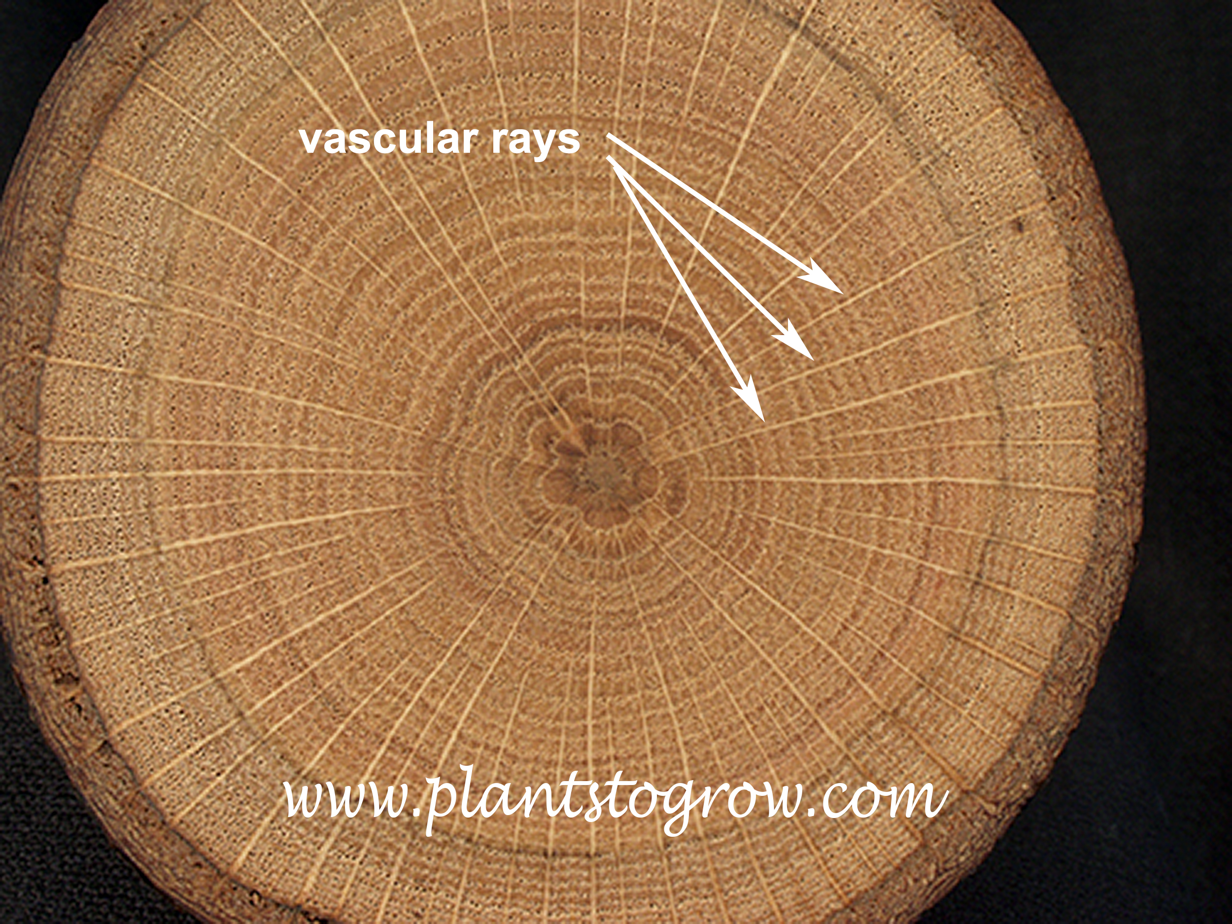 | Description | Woody stem cross sections of Walnut, Oak and Pine. Labeled are the sapwood, heartwood, pith and vascular rays. |