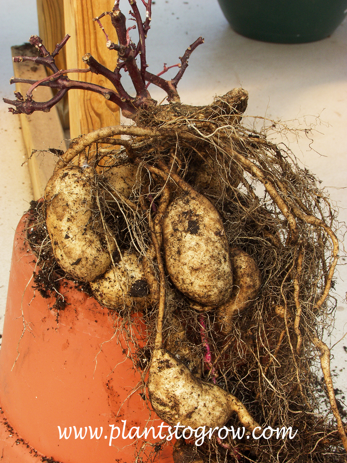 | Description | Tuberous roots are enlarged fleshy roots modified as a storage organ that may produce shoots at one end and roots at the other. The swollen roots lack nodes, but most will develop adventitious buds on the portion nearest the stem as the enlarged roots reach full size. |