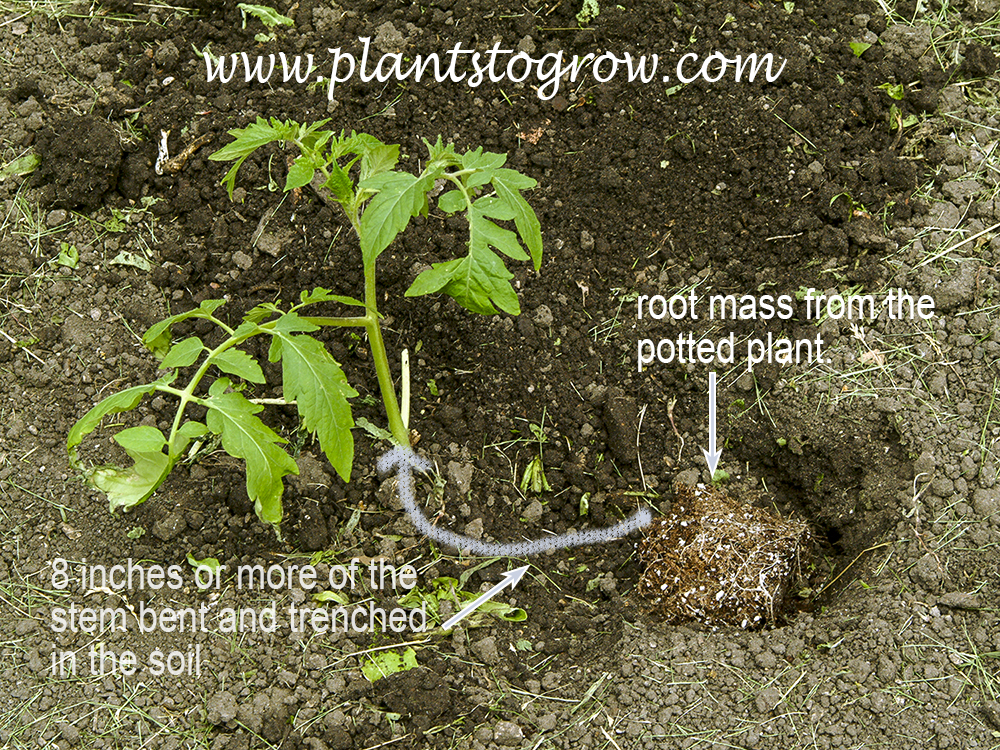 | Description | Trenching tomato plants is a gardening technique used to plant leggy specimens. Since tomatoes can easily develop roots, this method involves bending the flexible stem and burying it in a shallow trench. By doing so, the buried portion of the stem will develop roots, while the remaining plant will become sturdier due to the reduced leggy growth. |