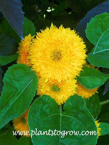 | Description | Teddy Bear Sunflower (Helianthus annuus) This is a shorter annual sunflower with golden yellow frilly, double flowers. |