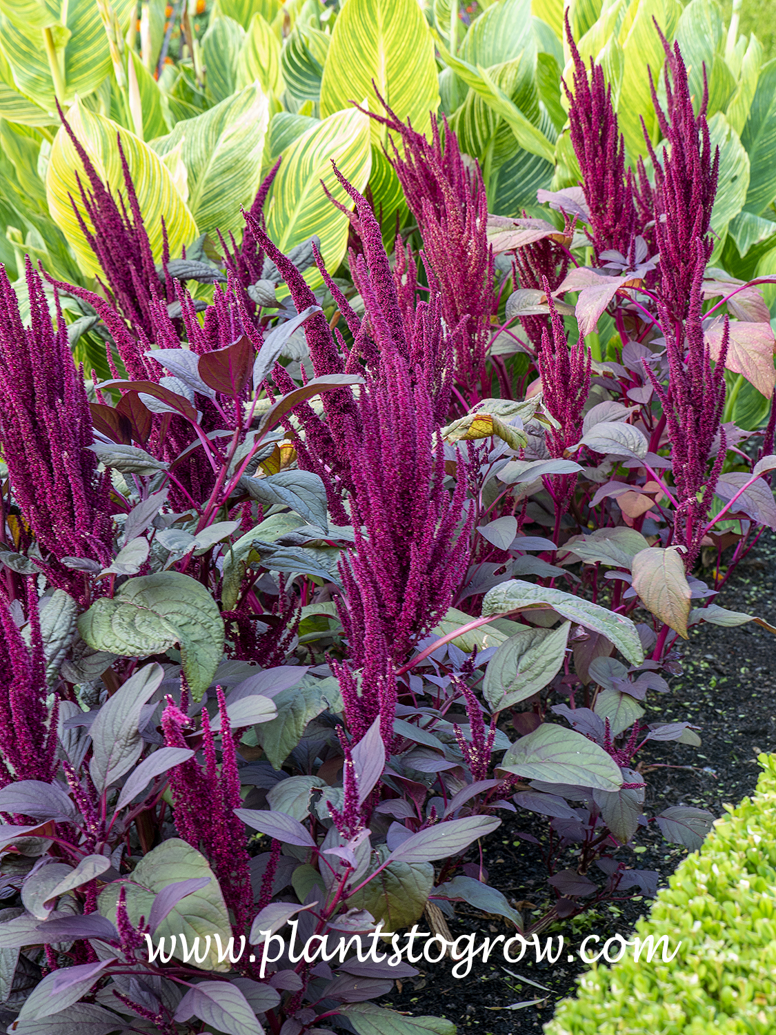 | Description | 'Velvet Curtain' Amaranth (Amaranthaceae Amaranthus cruetens) produces spires of dark red flowers, with reddish foliage and stems. Reaches 5 to 6 feet tall. |