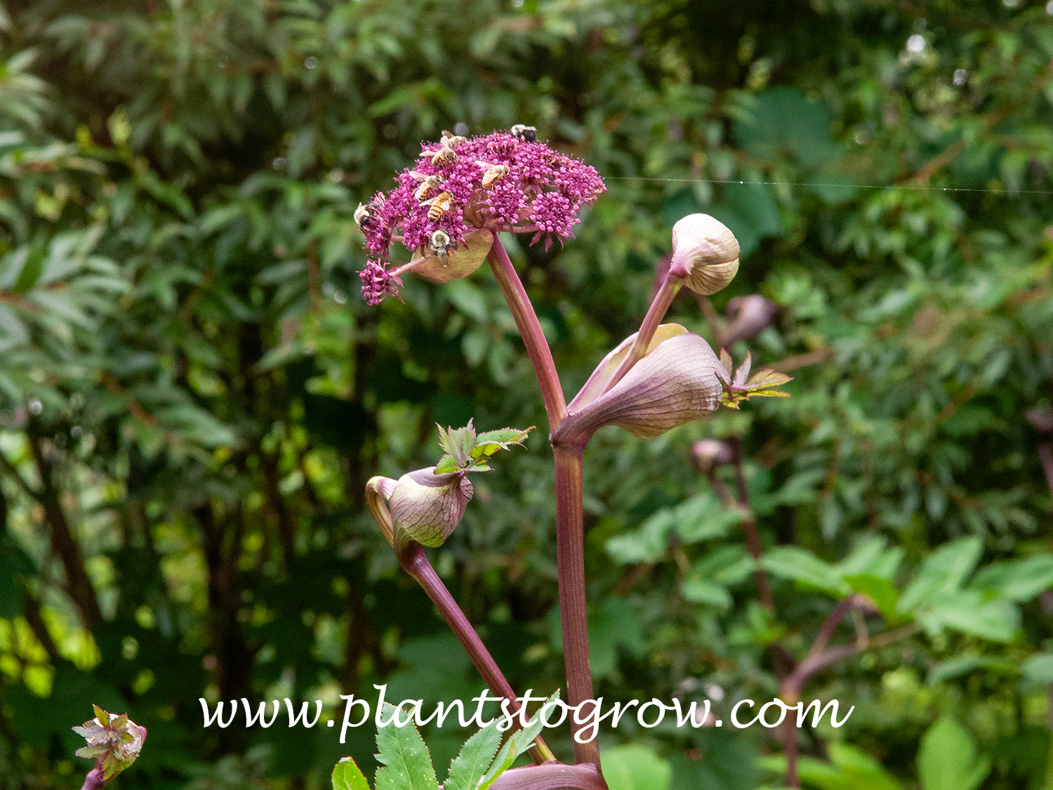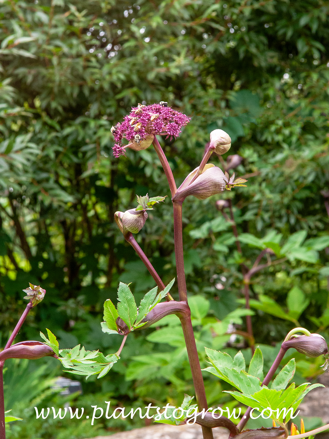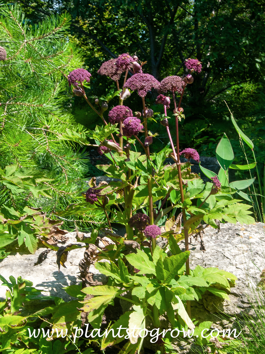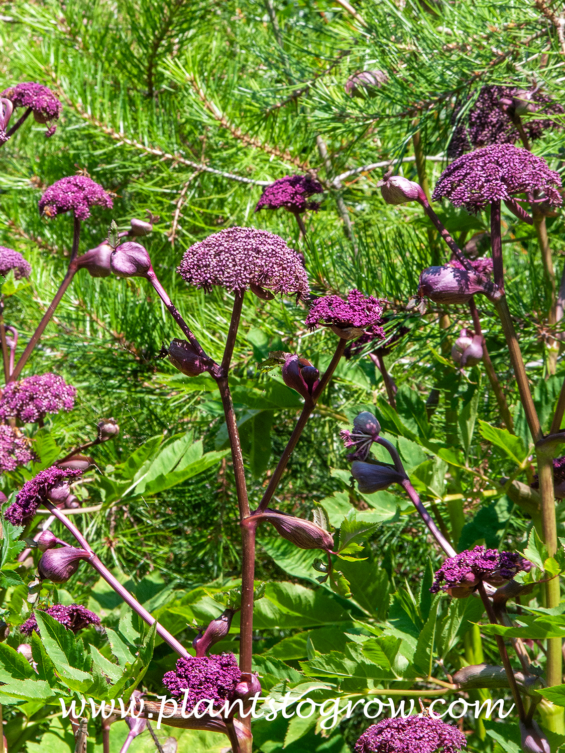 | Description | Korean Angelica (Angelica gigas) is a tall biennial or short-lived perennial that can grow to over five feet. The umbel flowers are carried on purple stems. |