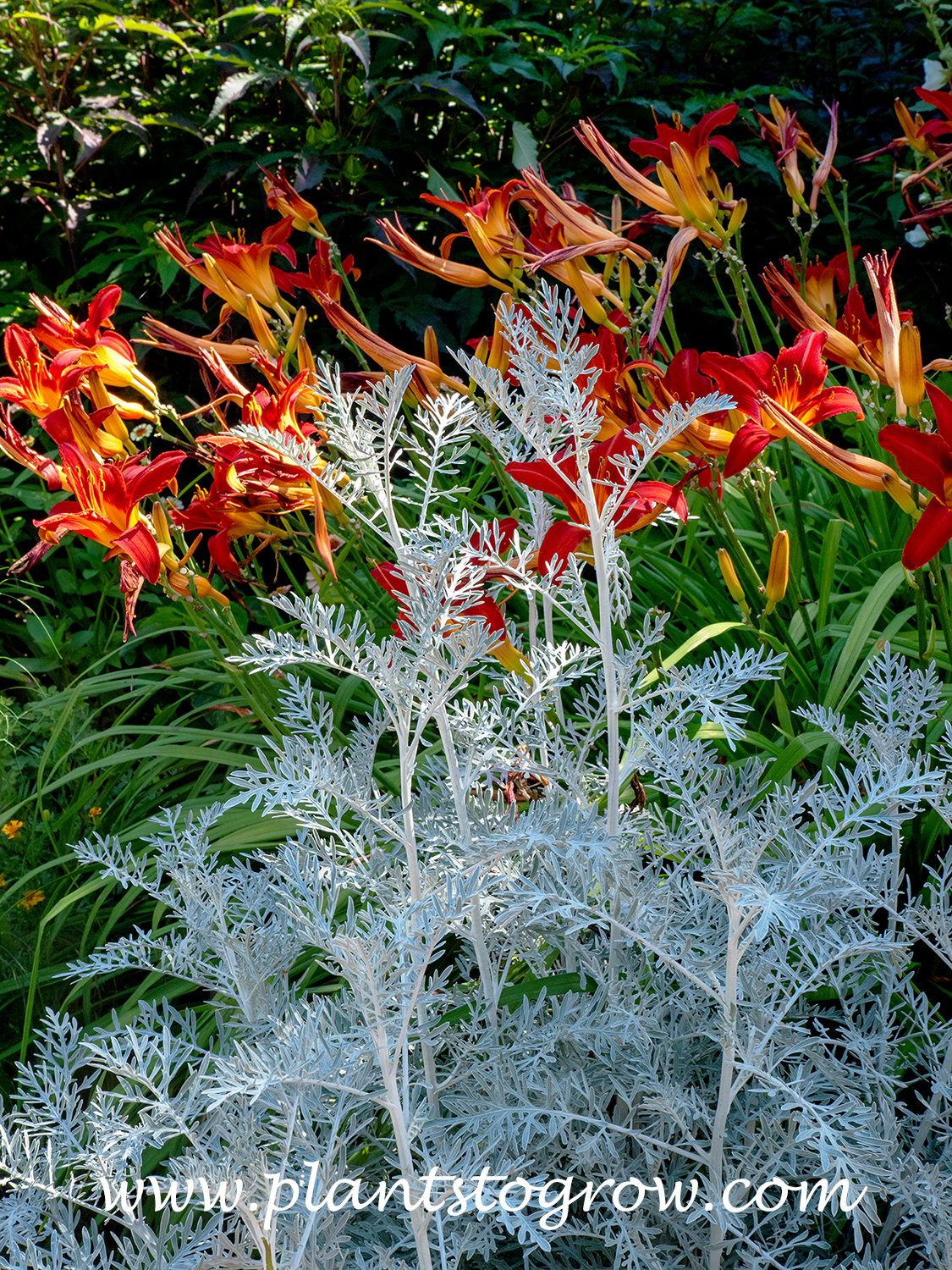 | Leaves | Has large, finely-cut, filigreed, silvery-grayish-white foliage similar to dusty miller. |