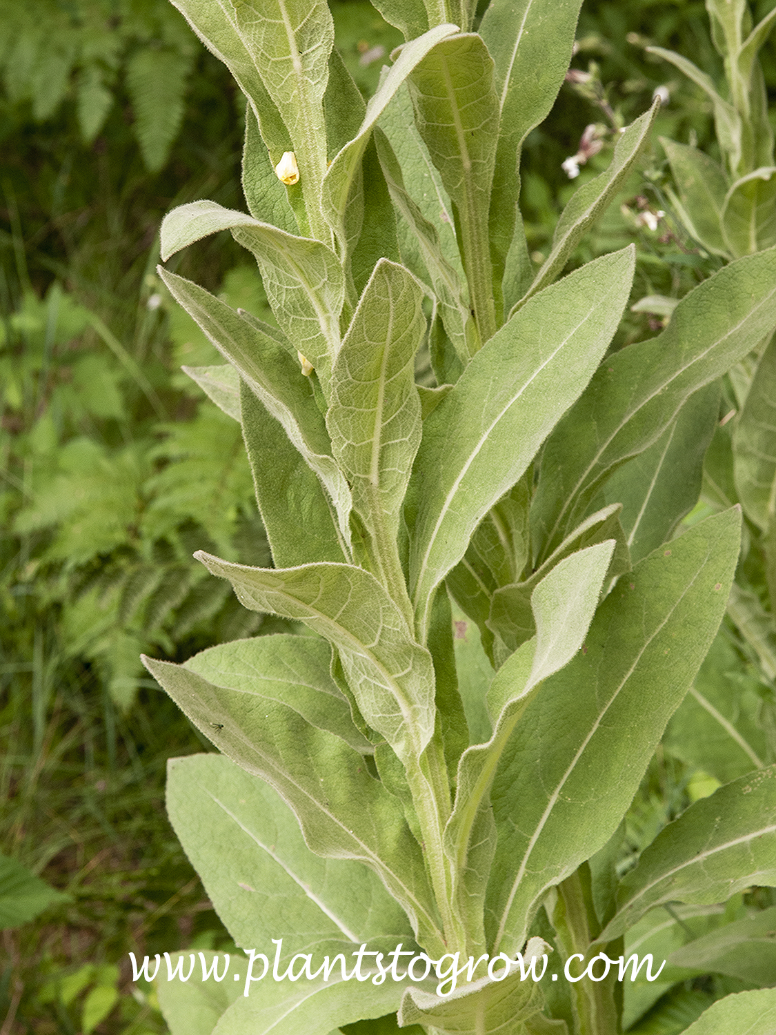 | Leaves | first years it is a rosette of woolly (tomentose) soft, pettable leaves, second year the flower spike is produced, leaves are larger at the base of the stem. |